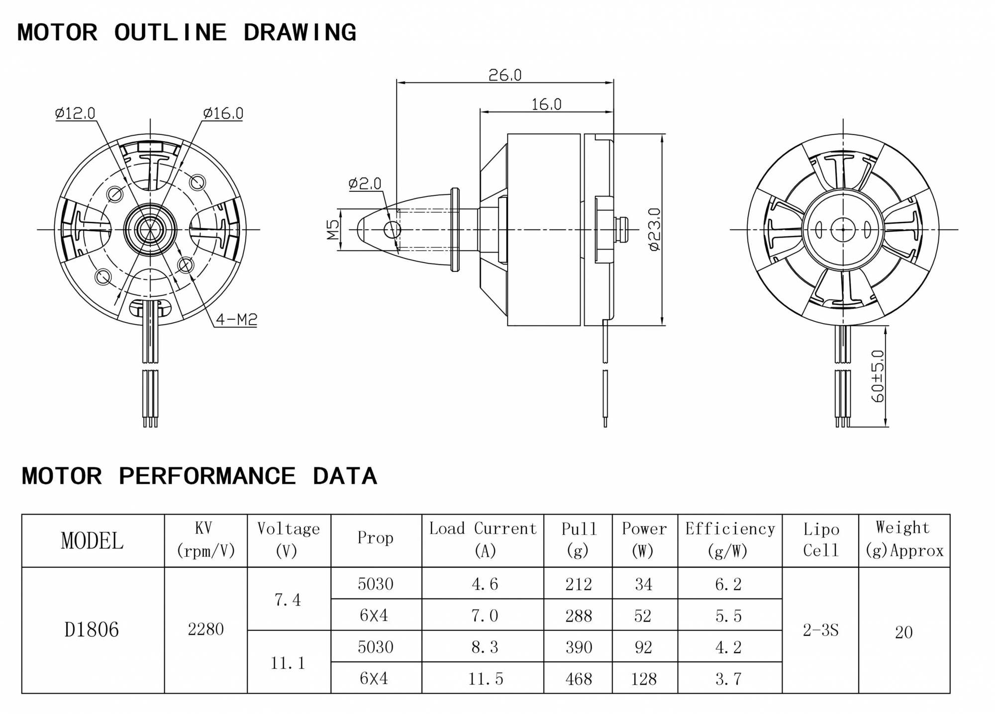 - KV (RPM/Volt): 2300KV